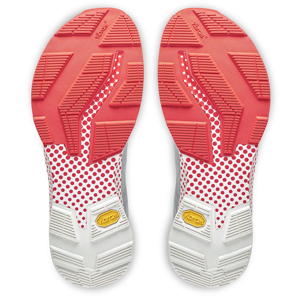 Über 8.000 eTPU-Kügelchen pro Sohle schaffen leichte, elastische Kissen für eine hochreaktive Dämpfung und über 74% höhere Energierückgabe im Vergleich zu Standard-Schäumen.