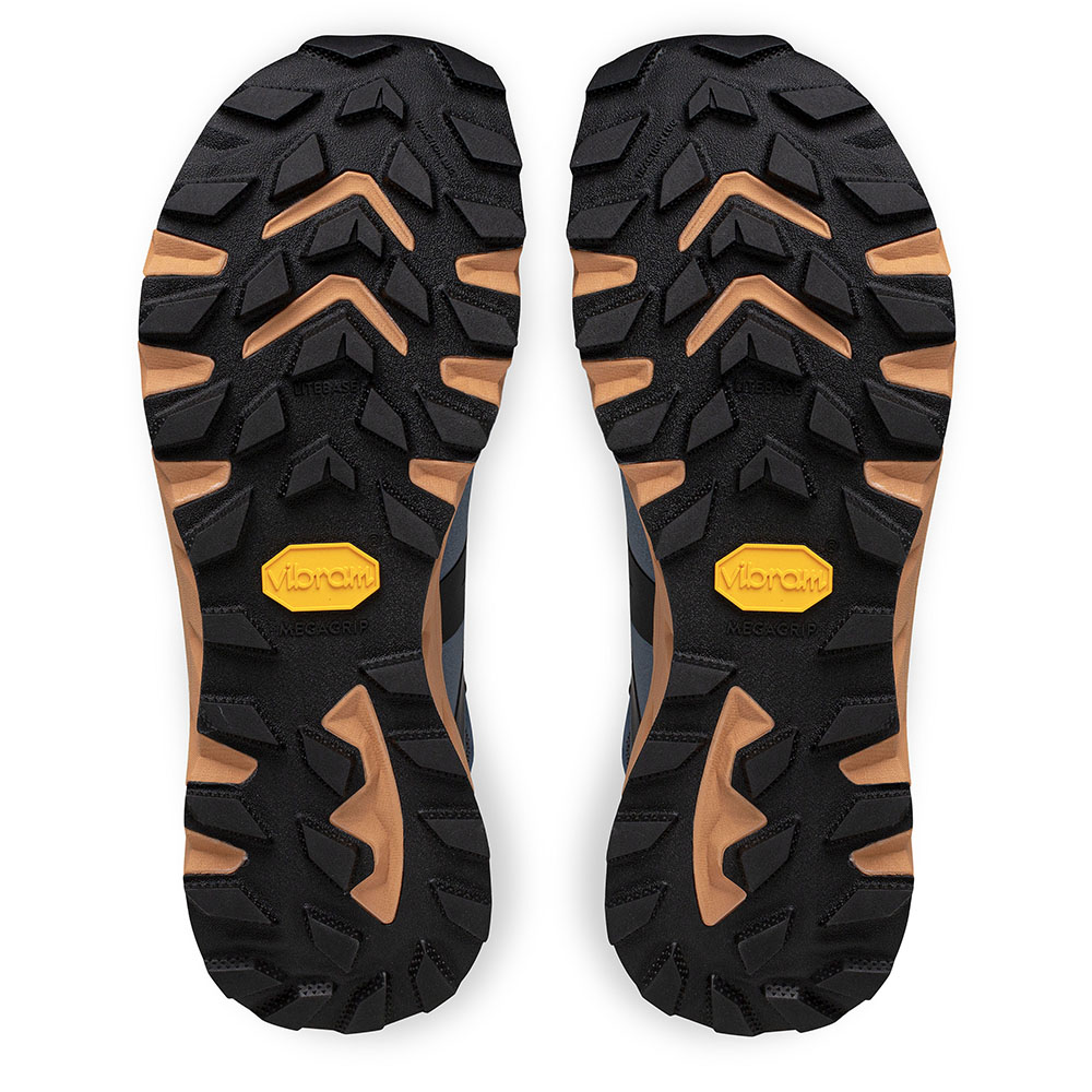 Die leichte Vibram® Megagrip Gummimischung auf LITEBASE Basis mit Traction Lug Technologie bietet überragende Rutschfestigkeit und ausdauernde Langlebigkeit.