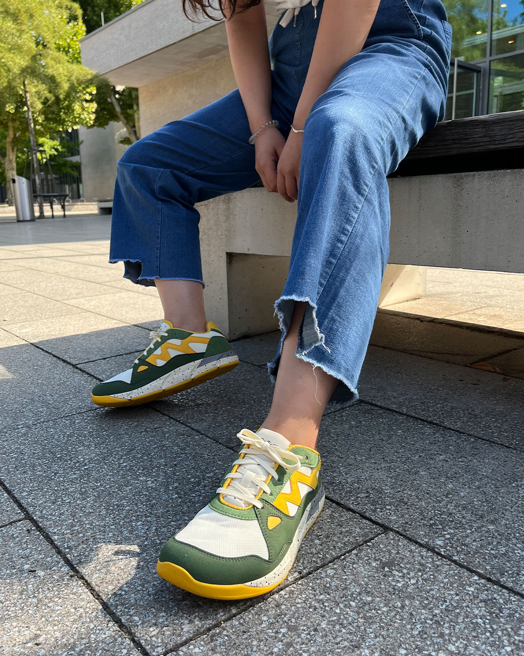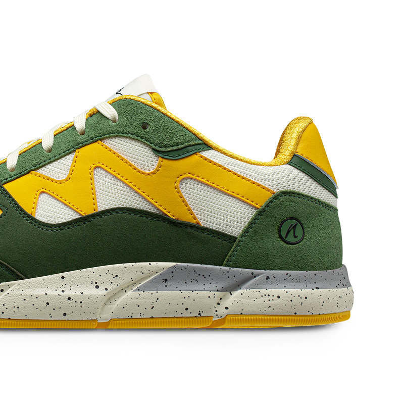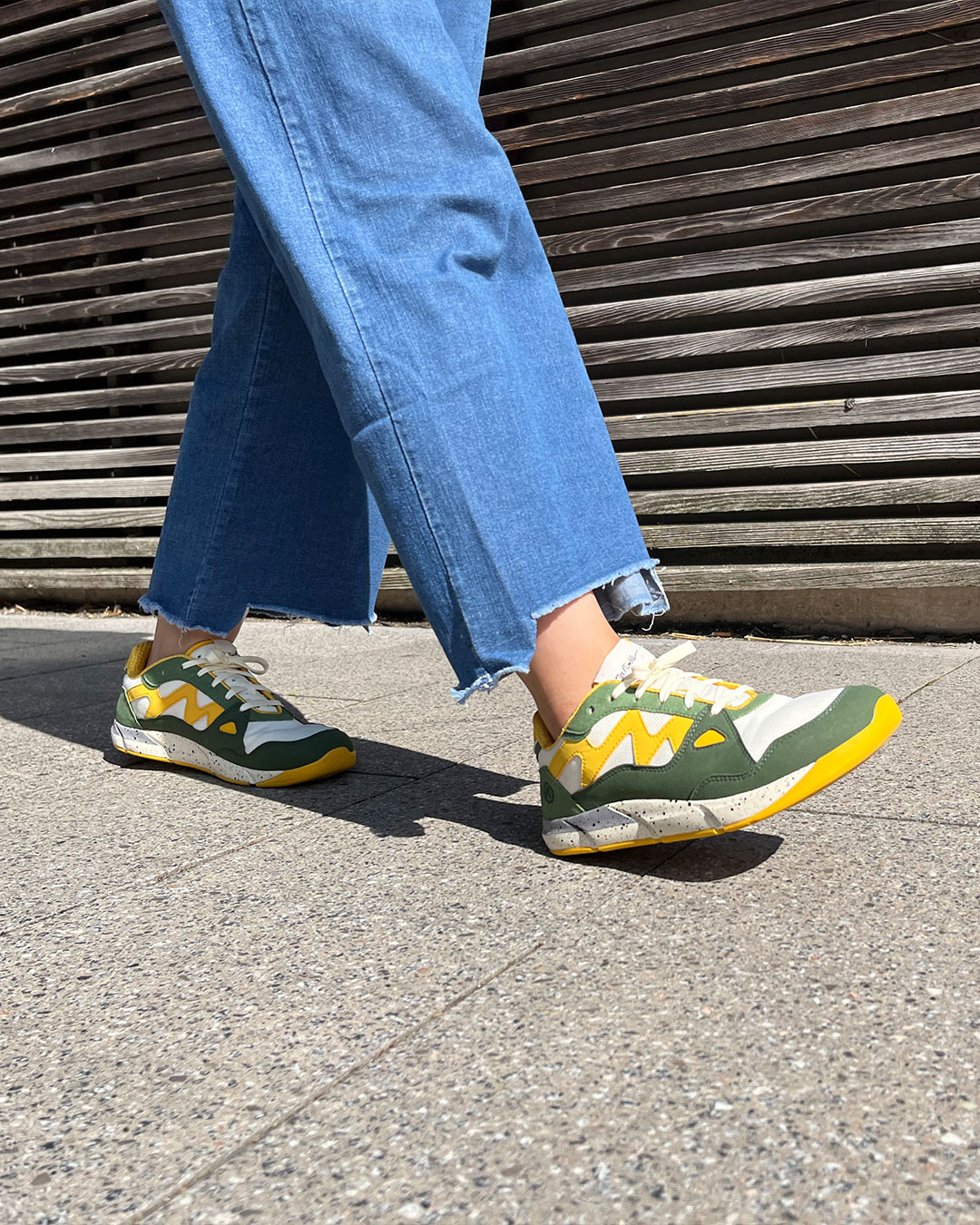 Die Wildleder-Optik der Applikationen auf dem Mesh ist übrigens eine geniale Täuschung: Es sind hochwertige Kunstfasern, die sich genauso anfühlen, aber den Schuh komplett vegan und super pflegeleicht machen. Und weil wir wollen, dass Du lange Freude an Deinem neuen Lieblingsschuh hast, haben wir Lauf- und Zwischensohle vom Klassiker Addict übernommen. Das bedeutet für Dich: Dein Sneaker Addict ist extrem rutschfest, selbst bei Nässe, und unglaublich abriebfest.