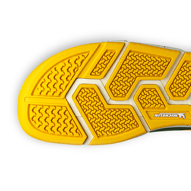 Erstklassiger Grip auf Asphalt ist durch die innovative Laufsohlen-Technologie gewährleistet, entwickelt in enger Kooperation mit Soles by Michelin.