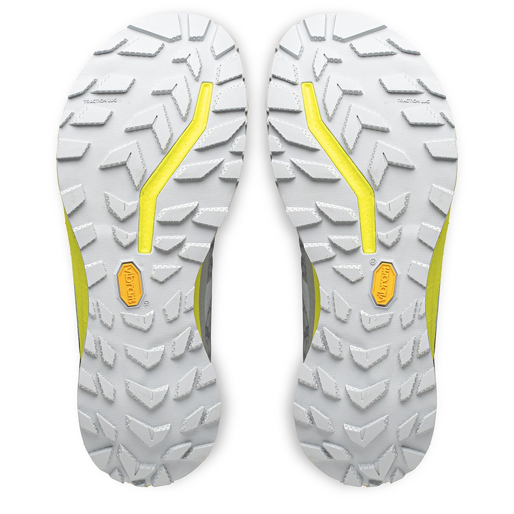 In Kooperation mit Vibram® haben wir auf Basis der widerstandsfähigen Megagrip Compound Gummimischung und der innovativen Traction Lug Technologie eine strapazierfähige Trailsohle entickelt, die bei geringem Abrieb und Gewicht ein hohes Maß an Rutschfestigkeit, Stabilität und Komfort bietet.