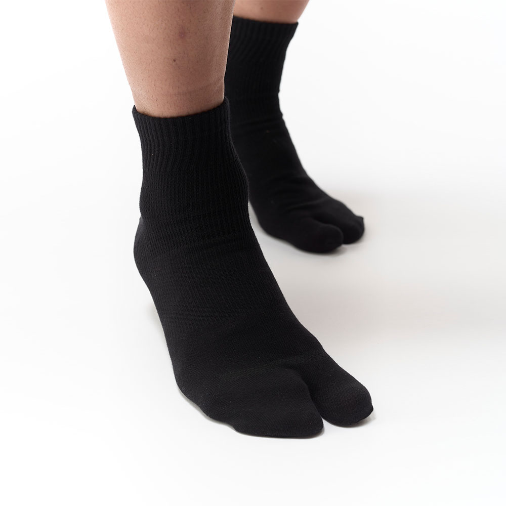 Das Design unserer Big Toe Socke basiert auf der japanischen Tabi-Socke mit getrenntem großen Zeh und ermöglicht Dir in Kombination mit unseren Trainingstools ein Training Deiner Fußmobilität.