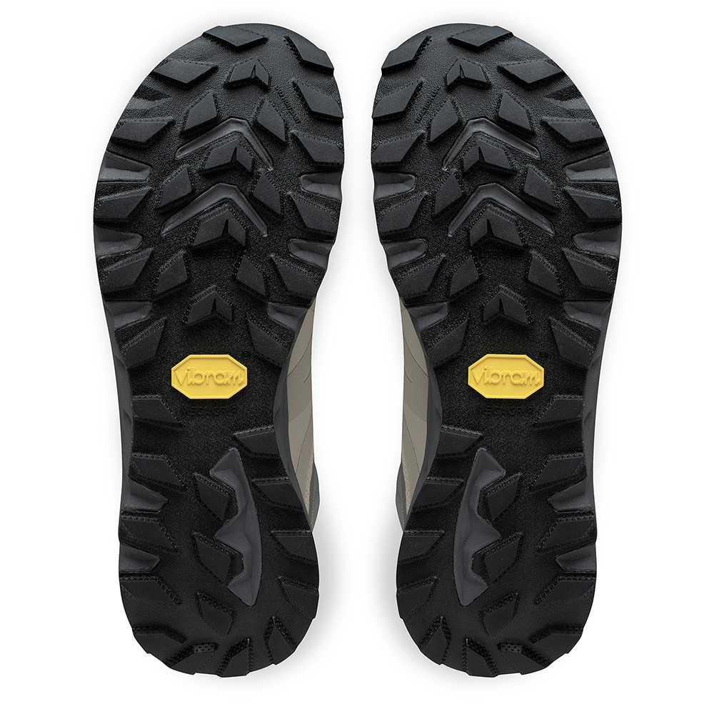 Die leichte Vibram® Megagrip Gummimischung auf LITEBASE Basis mit Traction Lug Technologie bietet überragende Rutschfestigkeit und ausdauernde Langlebigkeit.