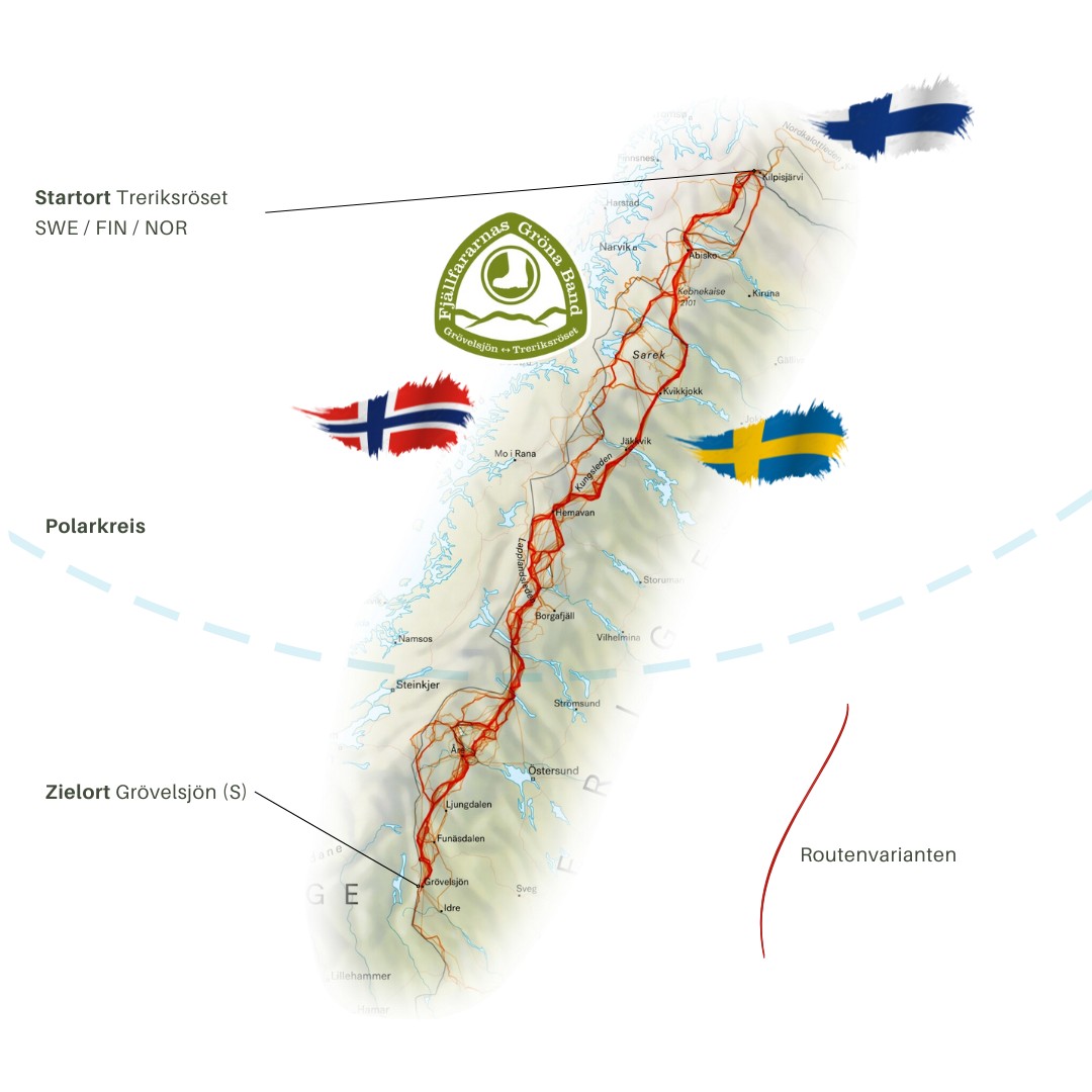 Ein schwedisches Geschwisterpaar hatte die Idee vor vielen Jahren, eine grobe Route für Wanderfreaks anzubieten und jedem Teilnehmer eine Plakette mit Namen, Distanz und Zeit an die Bergstation in Grövelsjön zu nageln. Jedenfalls, wenn das Ziel erreicht wird. Dafür ist eine stattliche Meldegebühr zu entrichten und die Tour mit einem satellitenfähigen Messenger zu übertragen. Aus Kontroll- und Sicherheitsgründen ist dies notwendig und nicht unüblich.