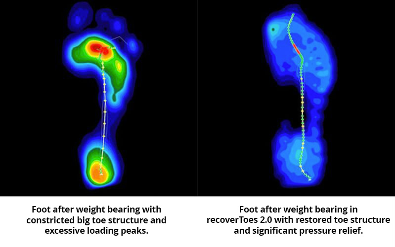 The ´recoverToes 2.0´ recovery sandal has been biomechanically engineered to provide relief from these symptoms and improve your natural big toe structure with every step.